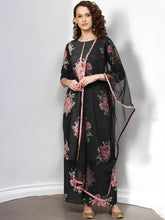 Simple & Elegant black dress from Ahalyaa. This comfortable black kurta set is versatile to wear to a special event or wear with jeans for a casual look. you can pair this kurta set with bright accessories and high heels.