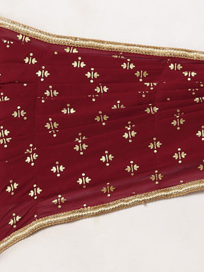 Ahalyaa Maroon & Golden Georgette Printed Ready to Wear Saree (Without Blouse)